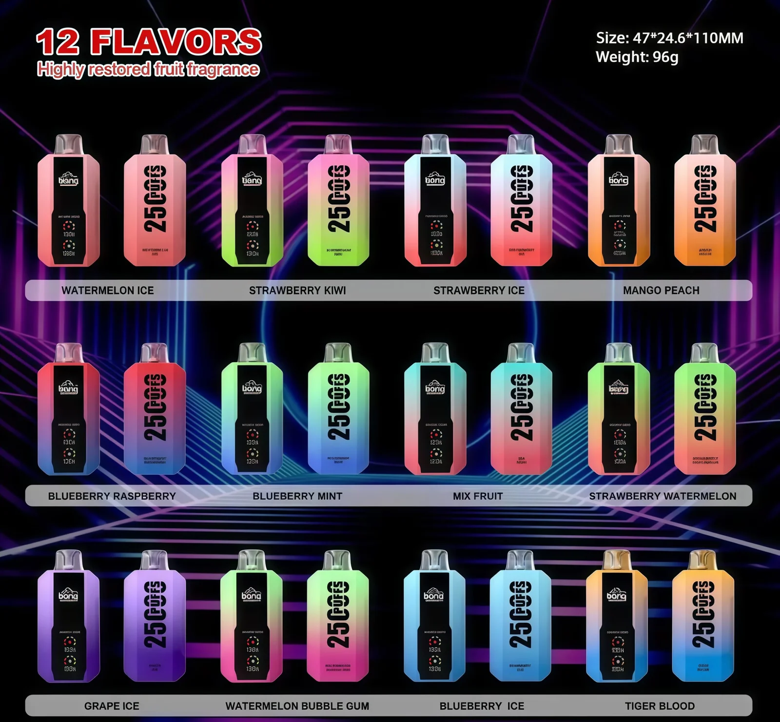 無論你追求濃郁口感、穩定霧化,還是視覺科技感,Bang 25000 都能一次滿足。