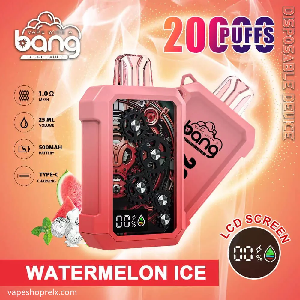 Bang Wheel 20000 Puff 一次性電子煙,以「齒輪造型」為靈感打造外觀,機身細節充滿科技與力量感,成為歐美市場熱銷的拋棄式電子煙之一。內建 超大容量油倉 + 可重複充電電池設計,實現約 20000口持久吸感,讓你暢吸不間斷。
