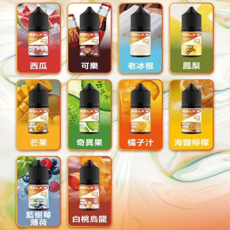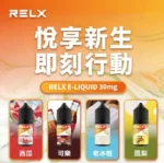 RELX 悅刻小菸油提供多款高人氣口味,涵蓋清爽果香、茶飲系與冰涼調性,層次清楚、不甜膩。