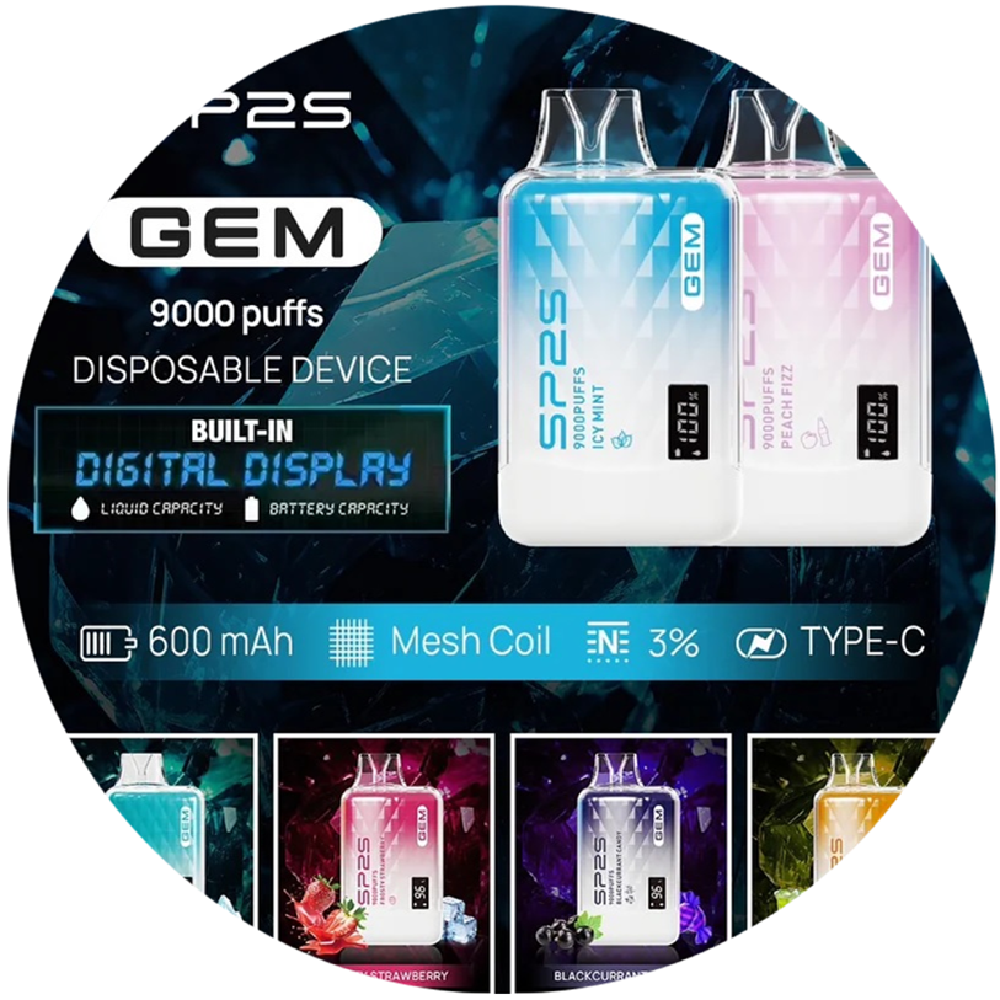 SP2S GEM 9000 Puff 是 SP2S 系列推出的一款高顏值、高容量、智能化的拋棄式電子煙,專為追求極致口感與長效續航的用戶設計。